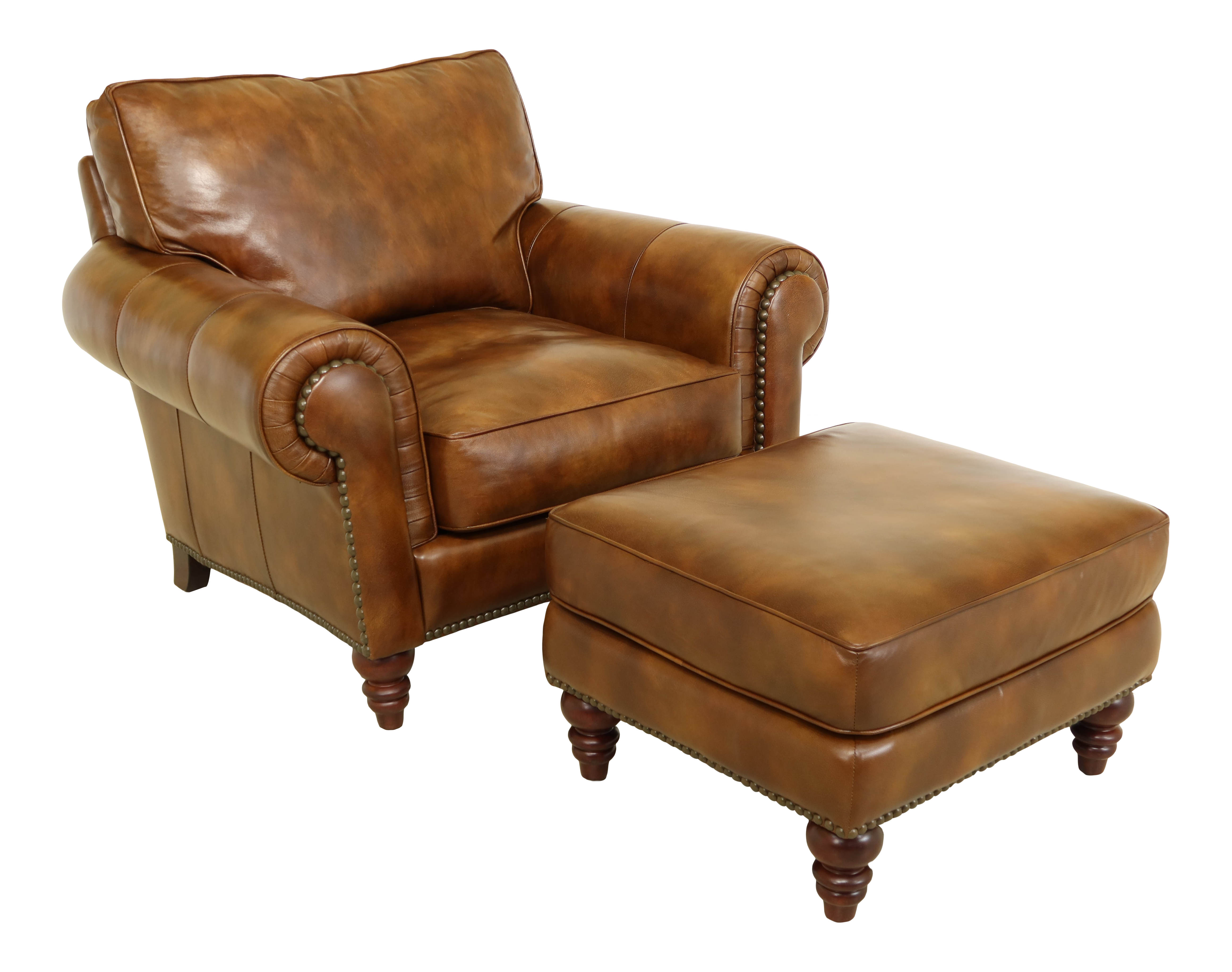 Bassett Hamilton Traditional Leather Chair And Ottoman With Nail