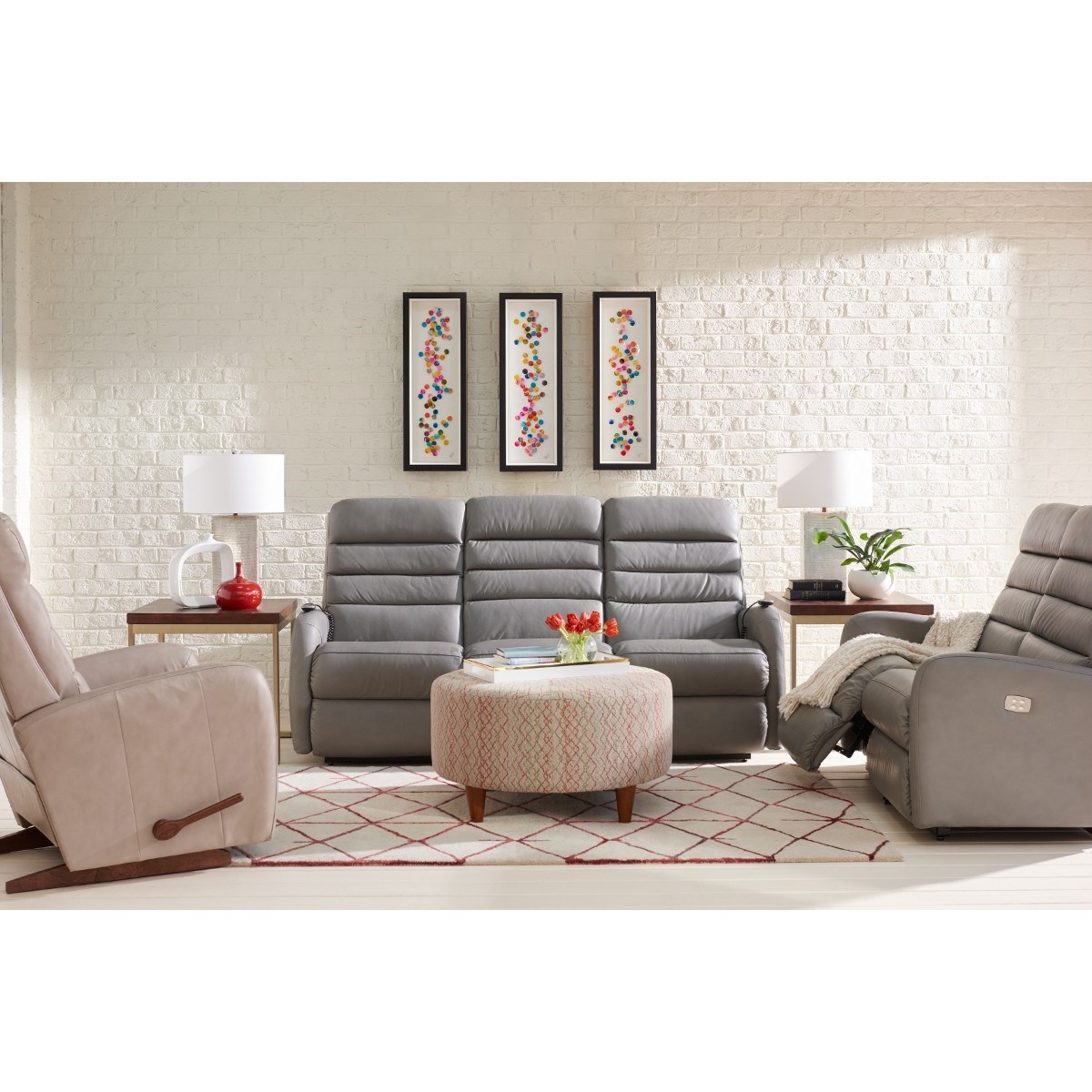 La Z Boy Chairs Loop Round Cocktail Ottoman With Topstitch