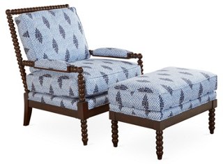 Miles Talbott Bankwood Spindle Chair Ottoman Blue One Kings